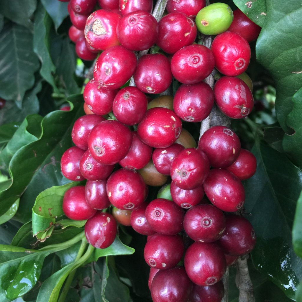During the harvest season, up to 400 people are employees to selectively handpick ripe, red cherry on the farm. Additional workers will visually hand sort picked cherry to ensure no underripe or damaged cherry remains. Once sorted, cherry is pulped on an eco-pulper, which minimizes water use while sorting cherry to remove floaters for separate processing. Coffee flows into a tiled tank where it ferments in water for approximately 12 hours. Following fermentation, parchment is washed in clean water and laid on raised beds to sun dry. Workers rakes parchment frequently to ensure even drying. It takes approximately 7 days for parchment to dry.